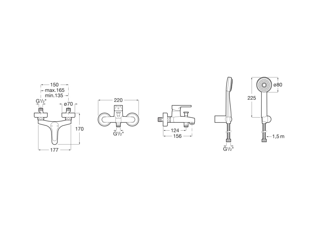 Bateria wannowo-prysznicowa z zestawem prysznicowym