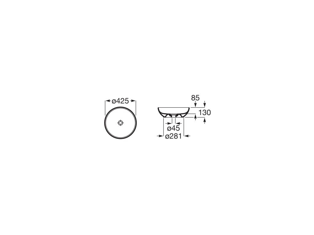 Roca BOL Umywalka nablatowa okrągła 42,5 cm Fineceramic® BIAŁY POŁYSK. A32787M000