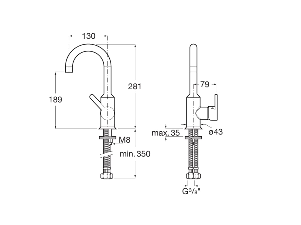 Bateria umywalkowa wysoka Cold Start uchwyt boczny