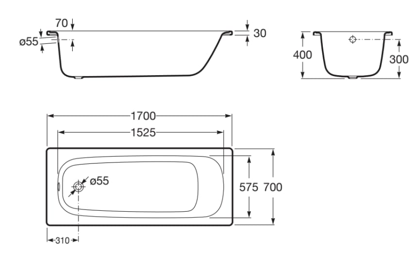 Roca CONTESA Prostokątna wanna stalowa 170 X 70 cm. A2358K0000