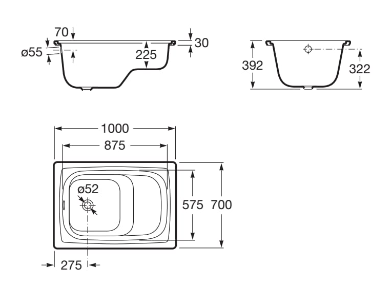 Roca CONTESA Prostokątna wanna stalowa z siedziskiem 100x70 cm. A213100001