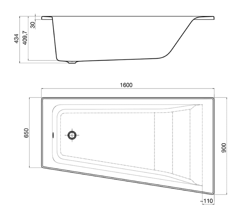 Asymetryczna narożna wanna akrylowa (Prawa)