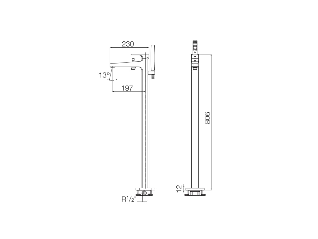 Bateria wannowo-prysznicowa wolnostojąca przywannowa z zestawem natryskowym
