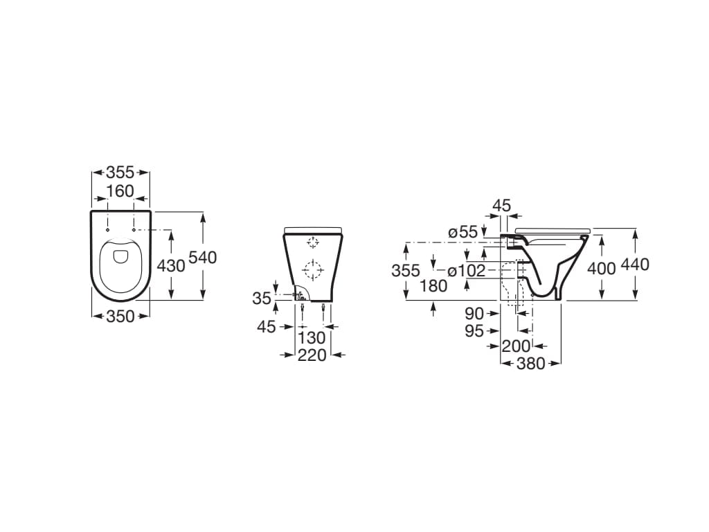 Roca GAP ROUND Miska WC stojąca Rimless przyścienna. A3470N7000