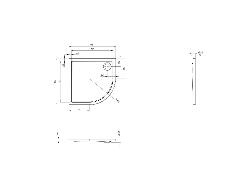 Roca GRANADA RONDO Brodzik półokrągły 80x80x4 FLAT R-45. A276257000
