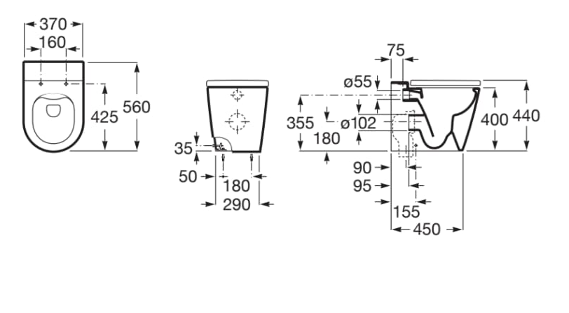 Miska WC bezkołnierzowa, z odpływem podwójnym (umożliwia montaż poziomy lub pionowy odpływu). Przystosowana do spłukiwania 4/2, 4,5/3 oraz 6/3l. Zawiera zestaw montażowy do podłogi.