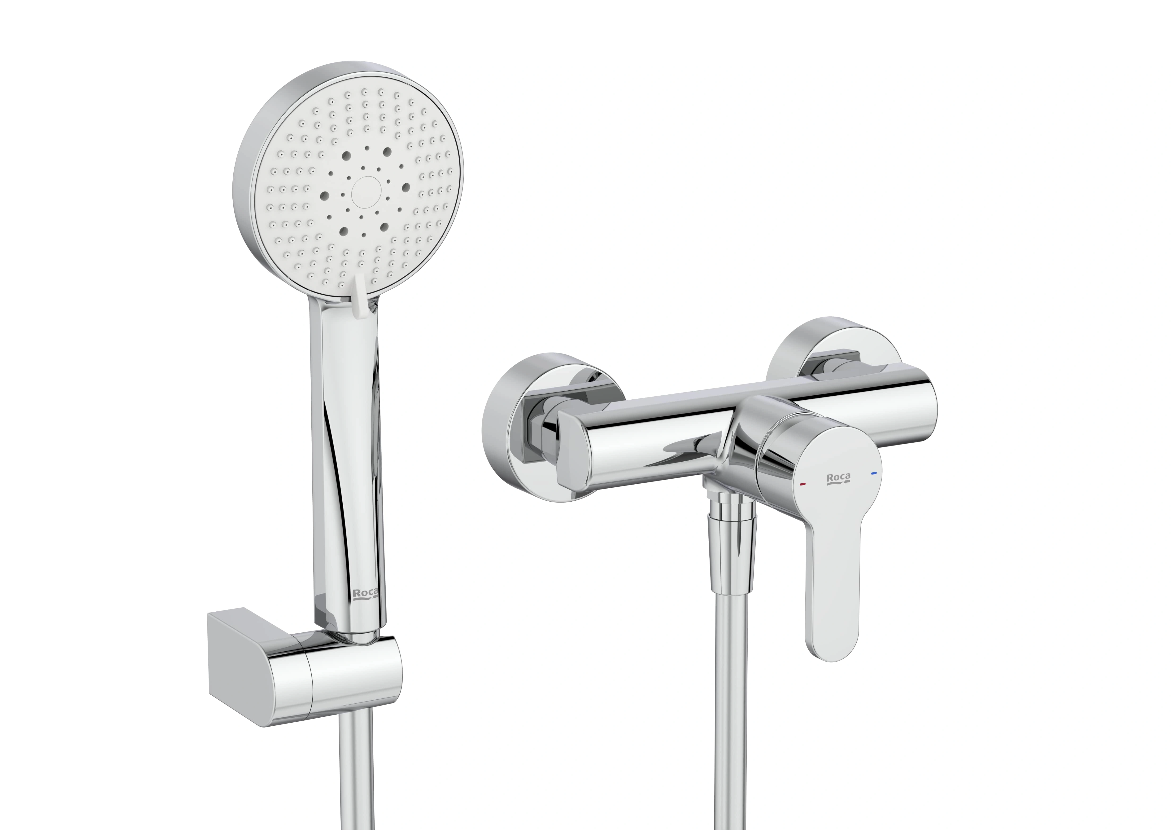 Roca L20 ROUND Jednouchwytowa bateria prysznicowa ścienna z zestawem prysznicowym, chrom. A5A209HC00