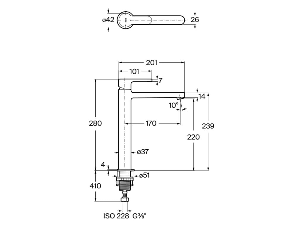 Roca L20 ROUND Jednouchwytowa bateria umywalkowa wysoka bez korka, Chrom. A5A349HC00
