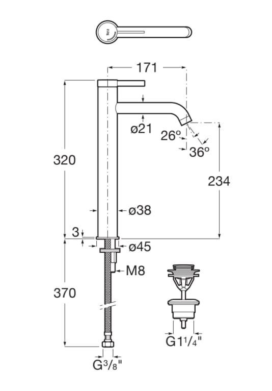 Bateria umywalkowa jednouchwytowa wysoka Cold Start z korkiem click-clack