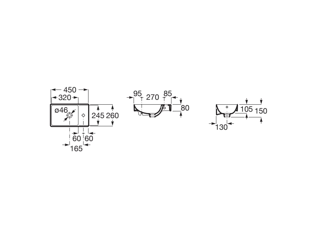 Mała umywalka ścienna 45 cm Compacto FINECERAMIC®