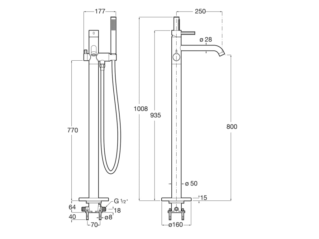 Producent RocaRoca ONA Wolnostojąca bateria wannowo-natryskowa z zestawem natryskowym Czarny mat. A5A279ENB0