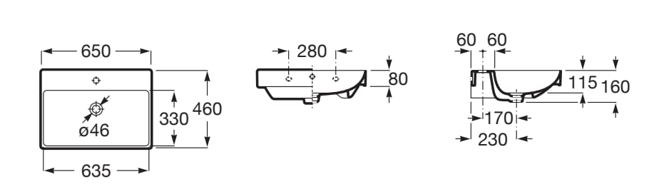 Roca ONA umywalka ścienna prostokątna 65x46 cm FINECERAMIC®. A327687000