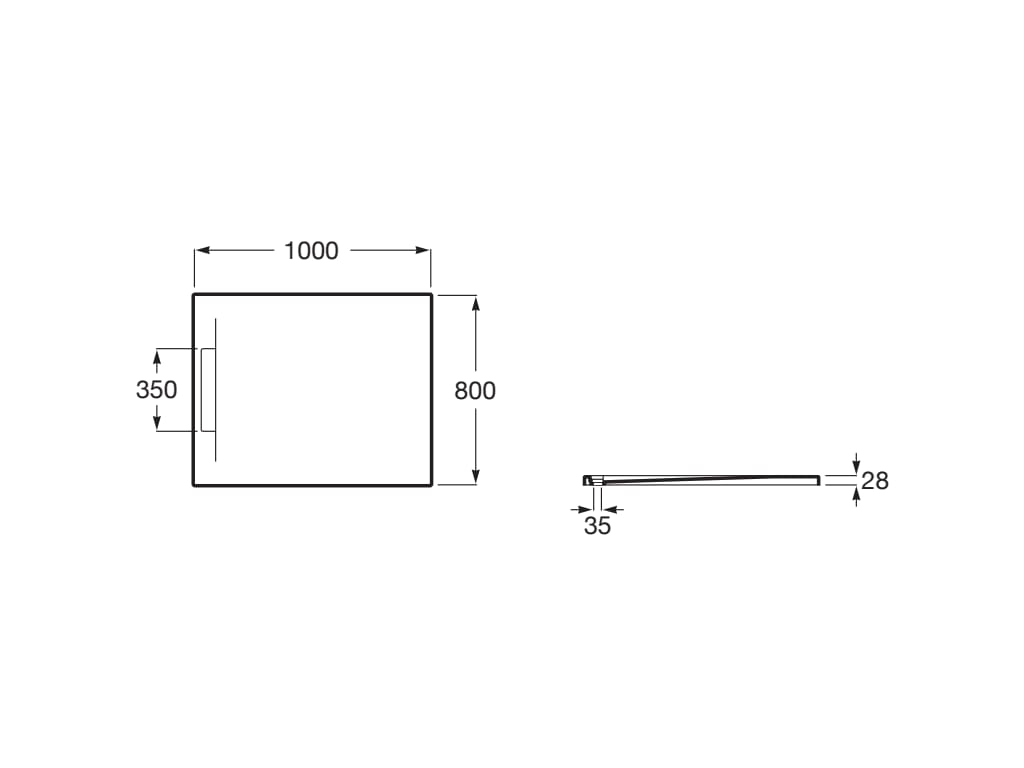 Roca PYROS Brodzik prostokątny 1000 x 800 mm NISKI SYFON W KPL (H:68). BIAŁY. AP9013E832003100