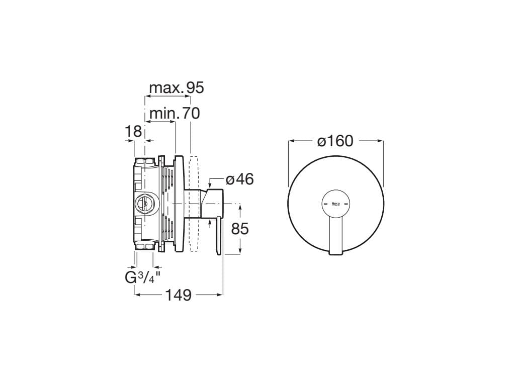 Roca TARGA Bateria prysznicowa podtynkowa do Rocabox PVD Brushed Gold. A5A2B5FVA0