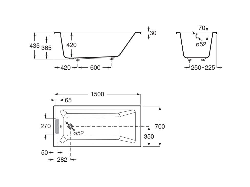 Roca VYTHOS wanna akrylowa 140x70 prostokątna biała. A248547000