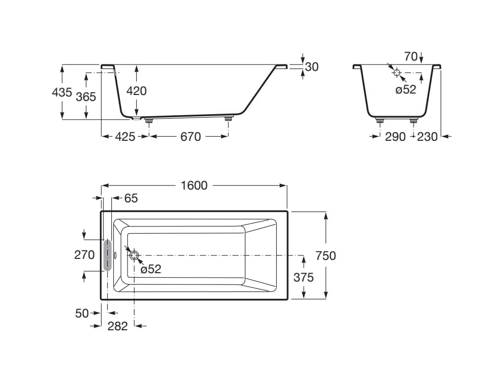Roca VYTHOS wanna akrylowa 160x75 prostokątna biała. A248551000