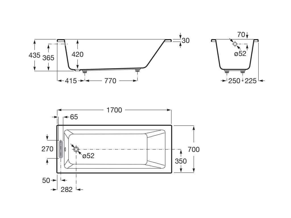 Roca VYTHOS wanna akrylowa 170x70 prostokątna biała. A248550000