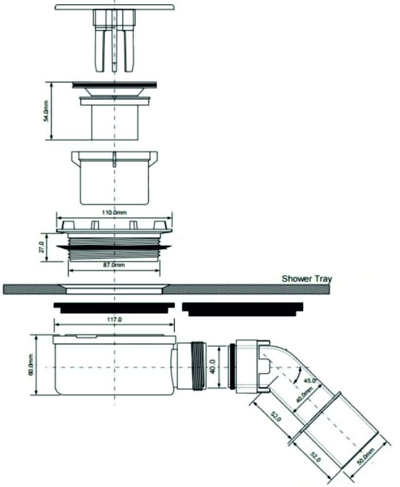 Niski (60 mm) syfon brodzikowy o Ø 90 mm o przepływie 27 l/min. Syfon posiada pokrywę z tworzywa sztucznego pokrytą powłoką chromu.