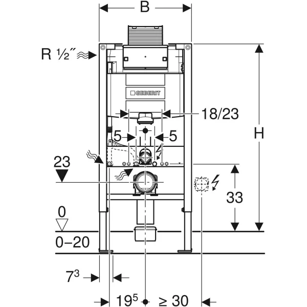 - Do montażu w ściankach systemowych Geberit Duofix o częściowej wysokości pomieszczenia