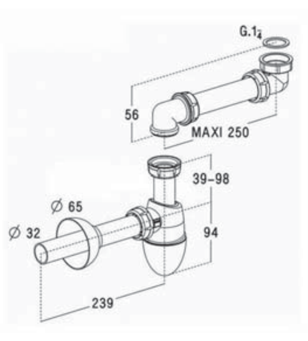 - odpływ 32 mm.