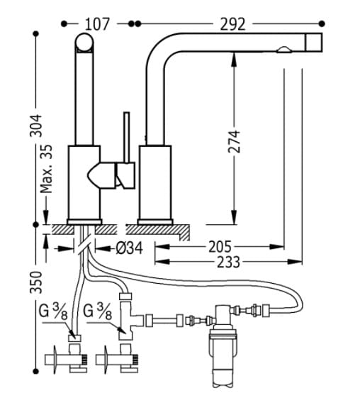 TOP-TRES Bateria zlewozmywakowa stojąca · Zawiera komplet przyłączy pasujący do istniejących instalacji filtrujących. Z filtrem.