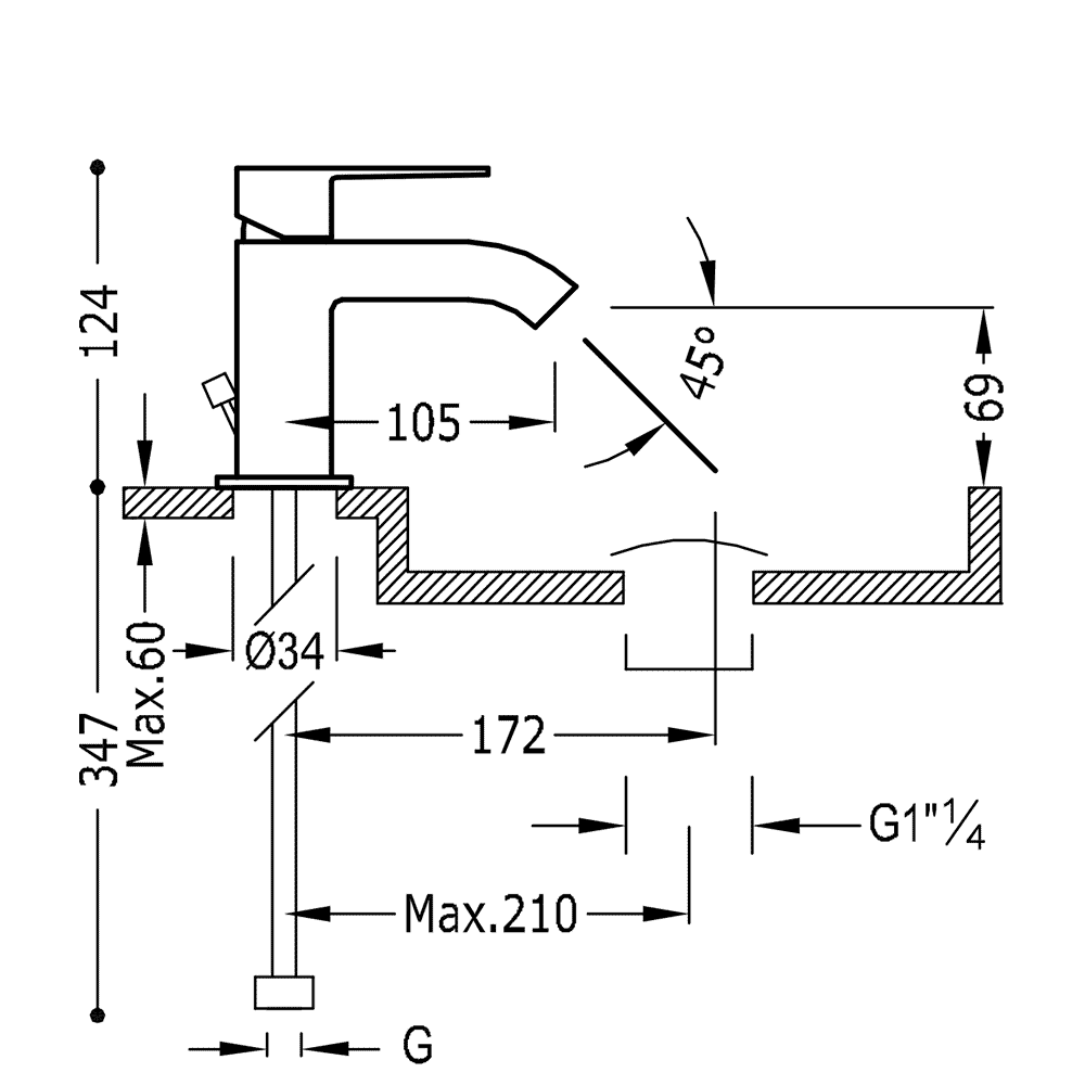 Tres Cuadro 106103DA Bateria Umywalkowa z korkiem automatycznym