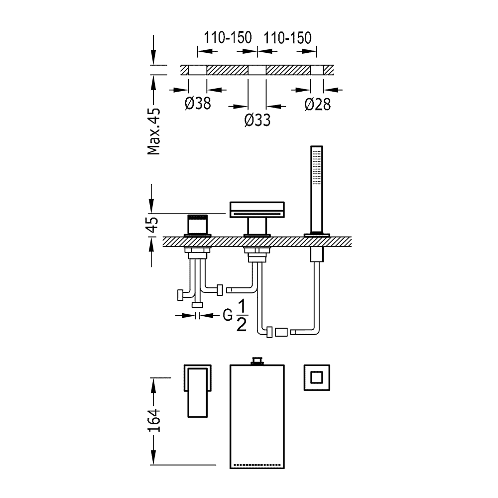 CUADRO-TRES Bateria wannowa trzyotworowa CUADRO