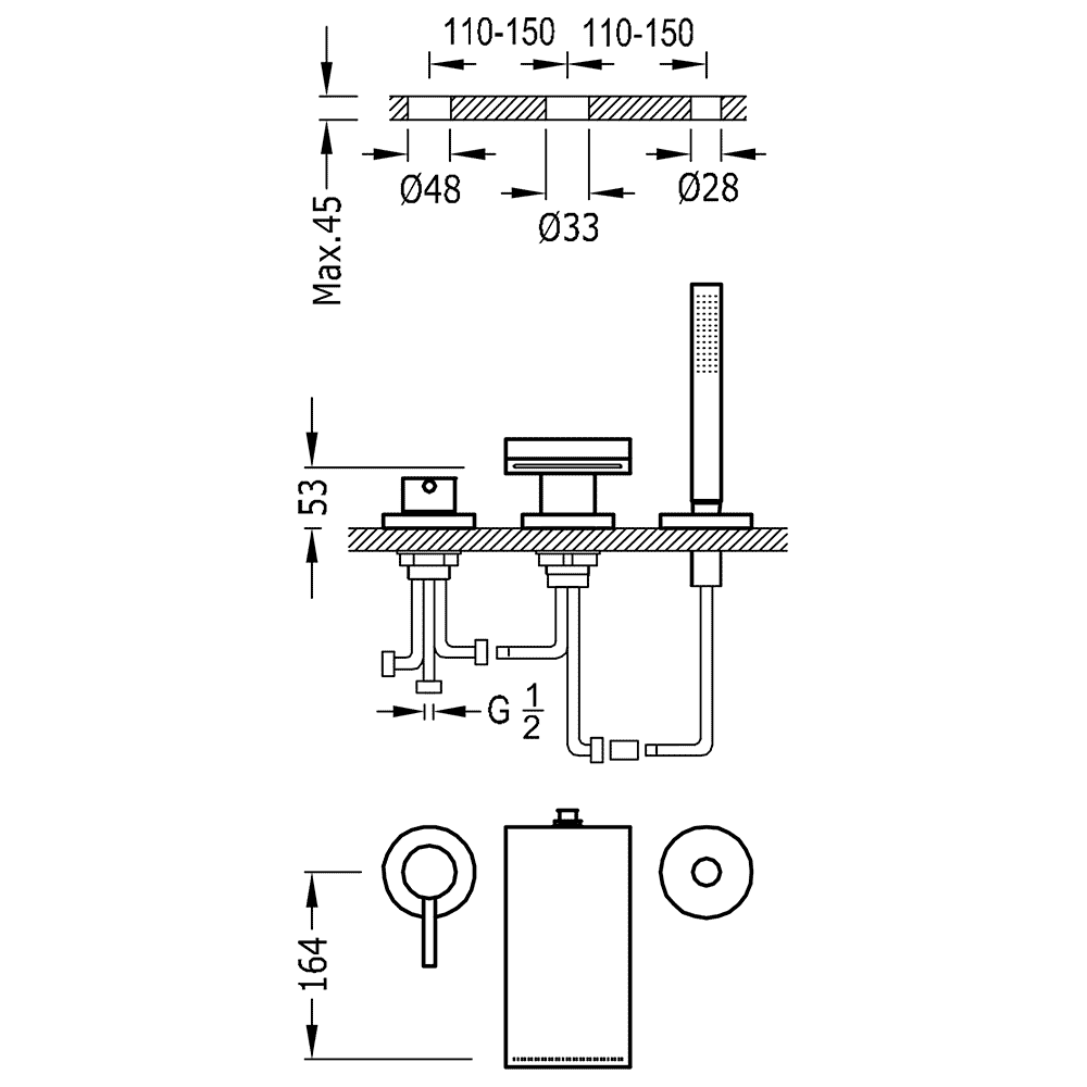 MAX-TRES Bateria wannowa trzyotworowa MAX Tres 162161