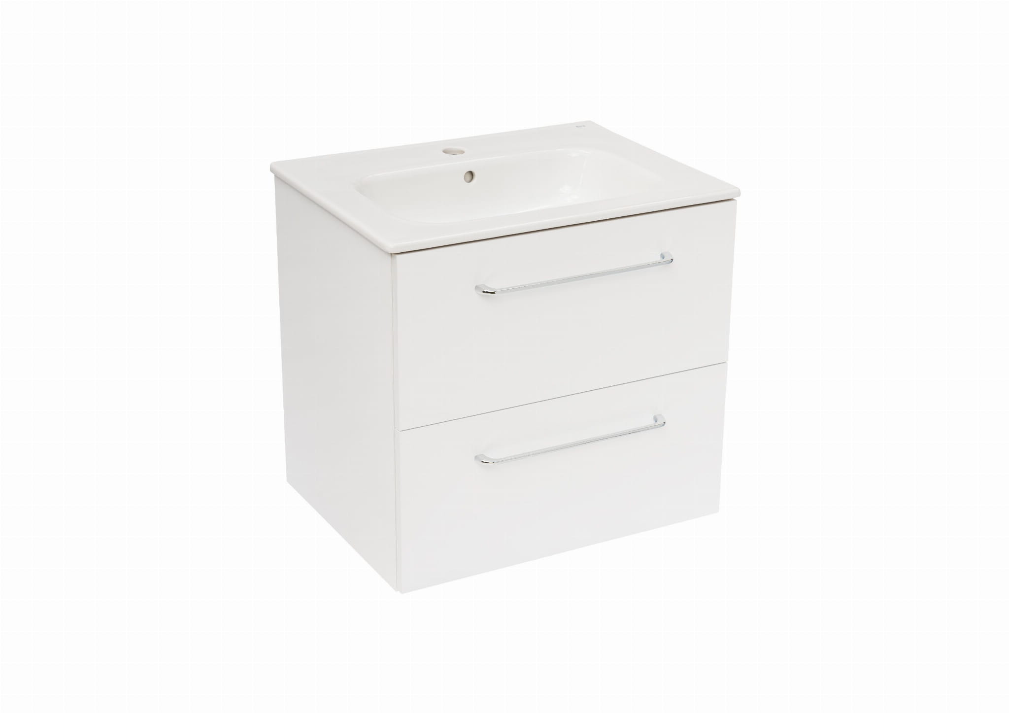 - Wyposażenie zawiera: szafka z 2 szufladami z funkcją cichego domykania, umywalka ceramiczna ze zintegrowana półką po obu stronach