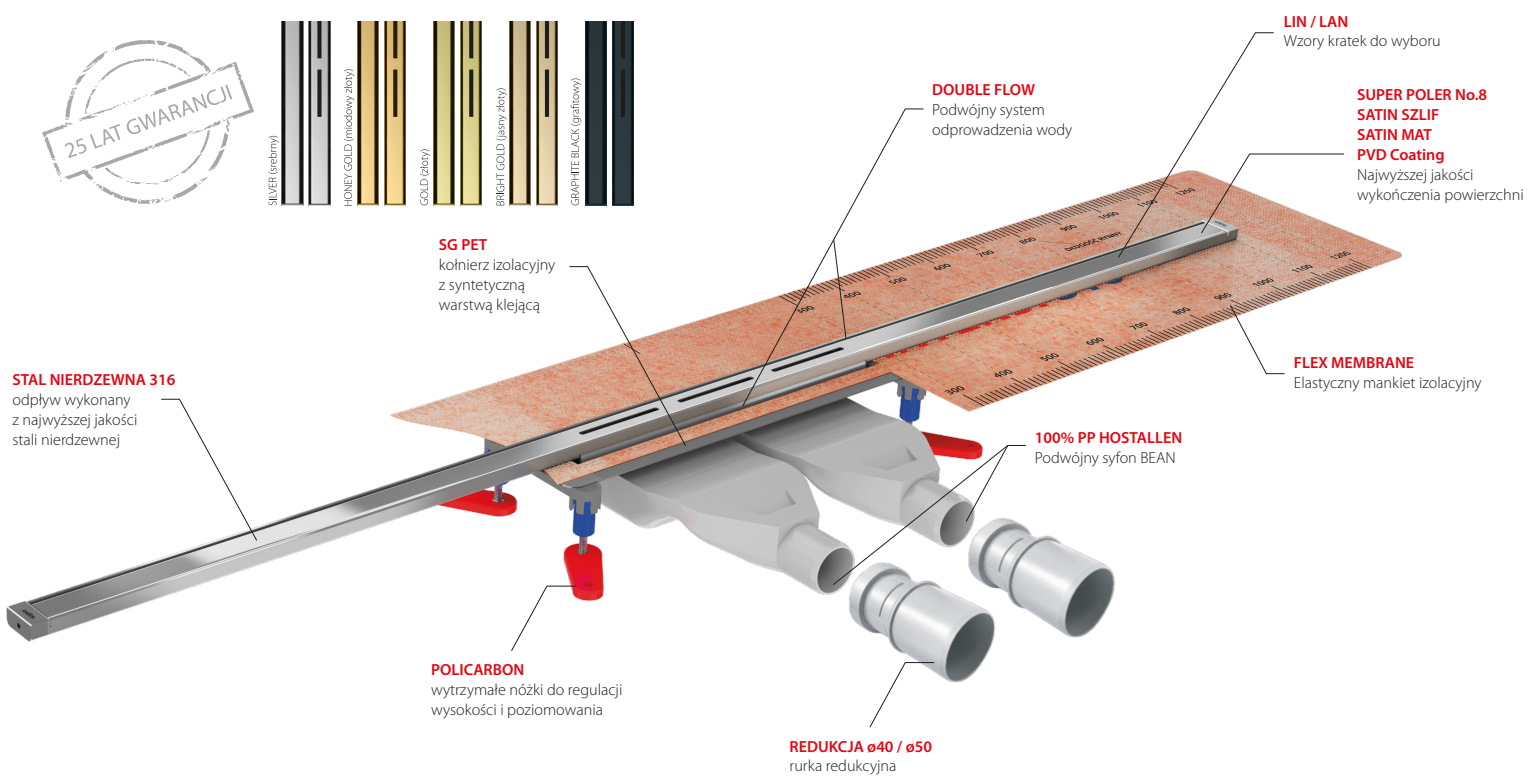 - wymiar: max. 150 cm / min. 40 cm (po przycięciu)