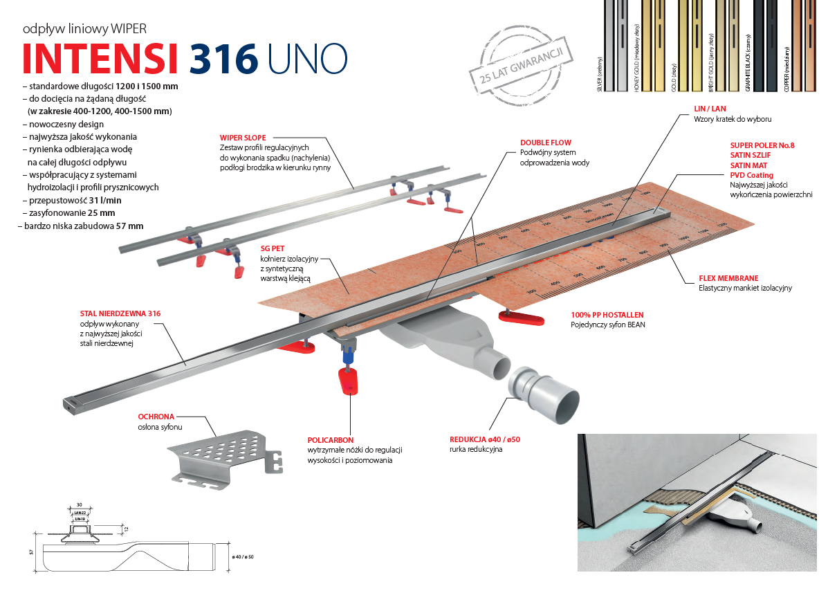 Wiper Intensi 316 UNO LIN Bright Gold Polish 120 cm / jasny złoty poler. 500.0258.47.120