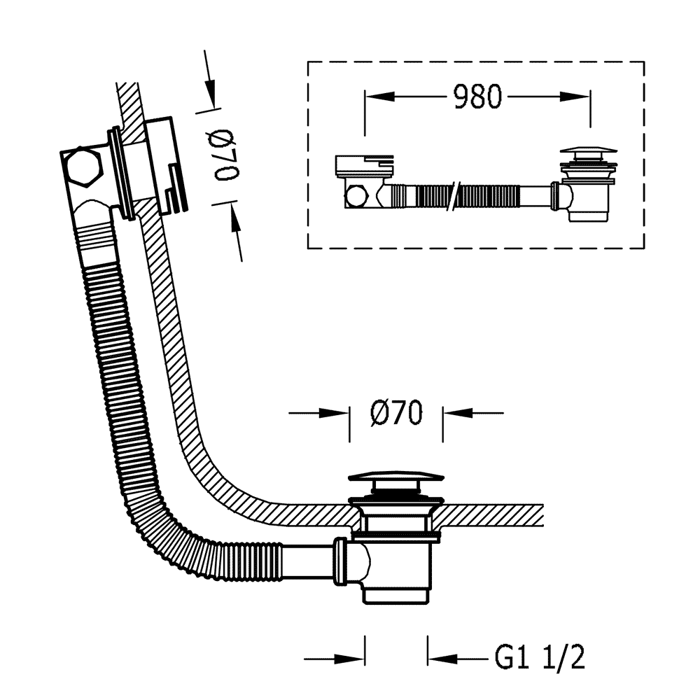 Zawór spustowy okrągły Clic-Clak klik do wanny z napełnianiem przez kaskadę i przelewem. TRES 13453430