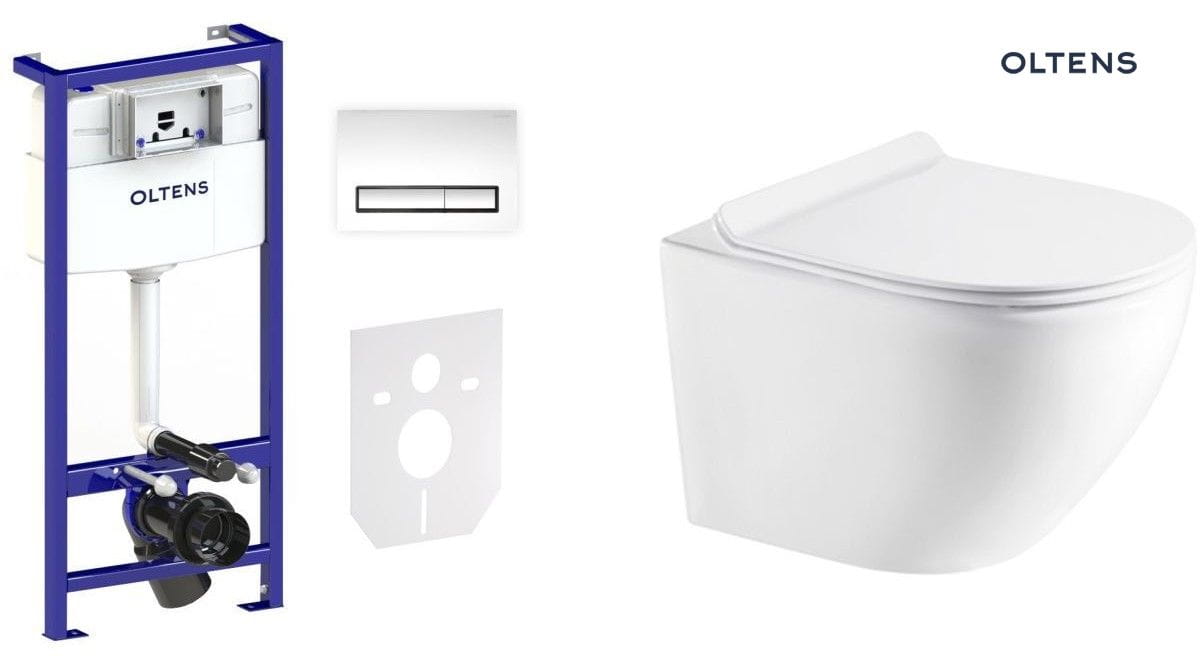 Zestaw ceramiki wiszącej Oltens Hamnes z kompletnym stelażem podtynkowym 5w1 z przyciskiem spłukującym: