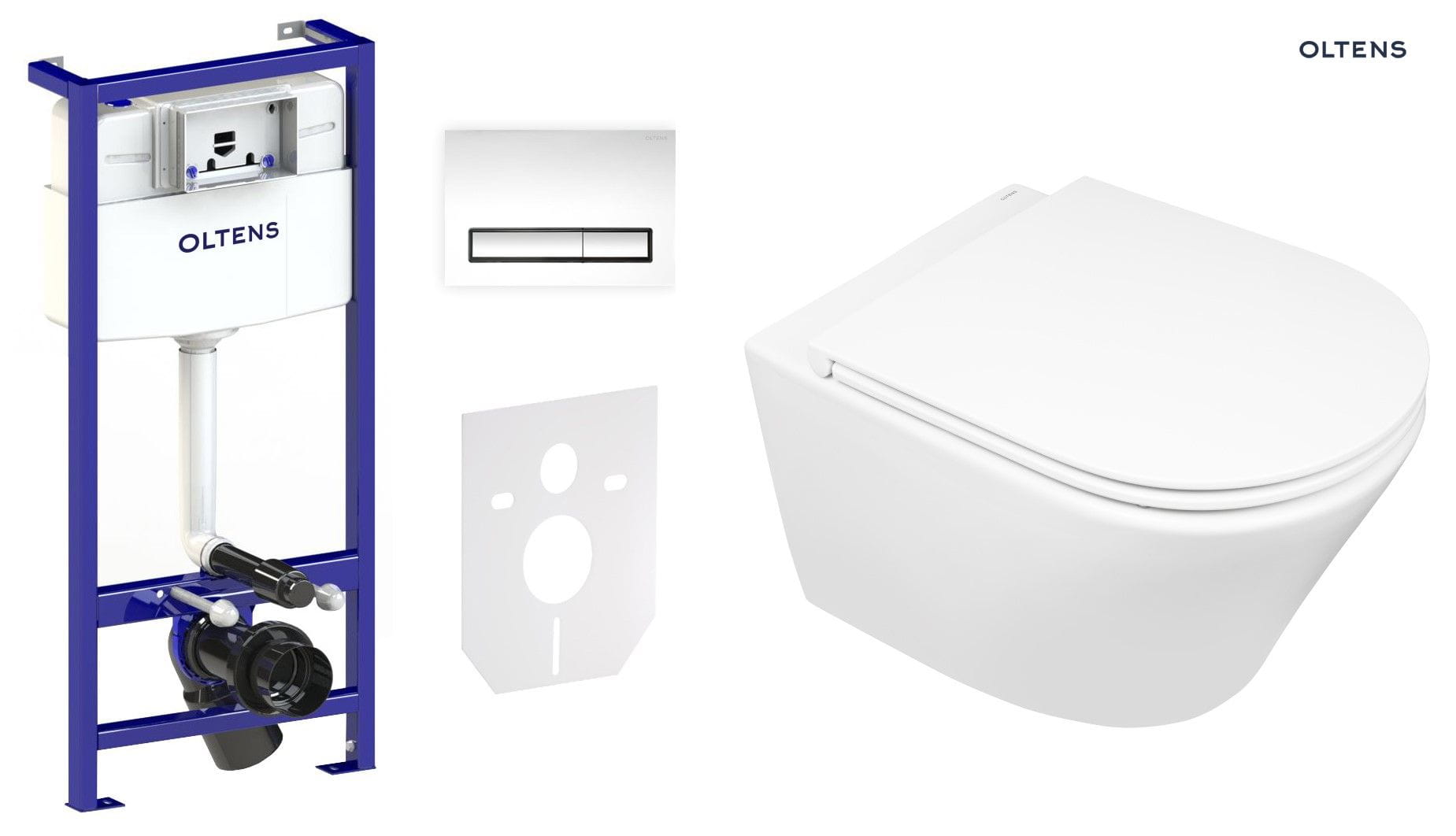 Zestaw Oltens Triberg Jog Torne 7w1 stelaż podtynkowy miska z deską 42005000 i przycisk spłukujący chrom błyszczący 58305100