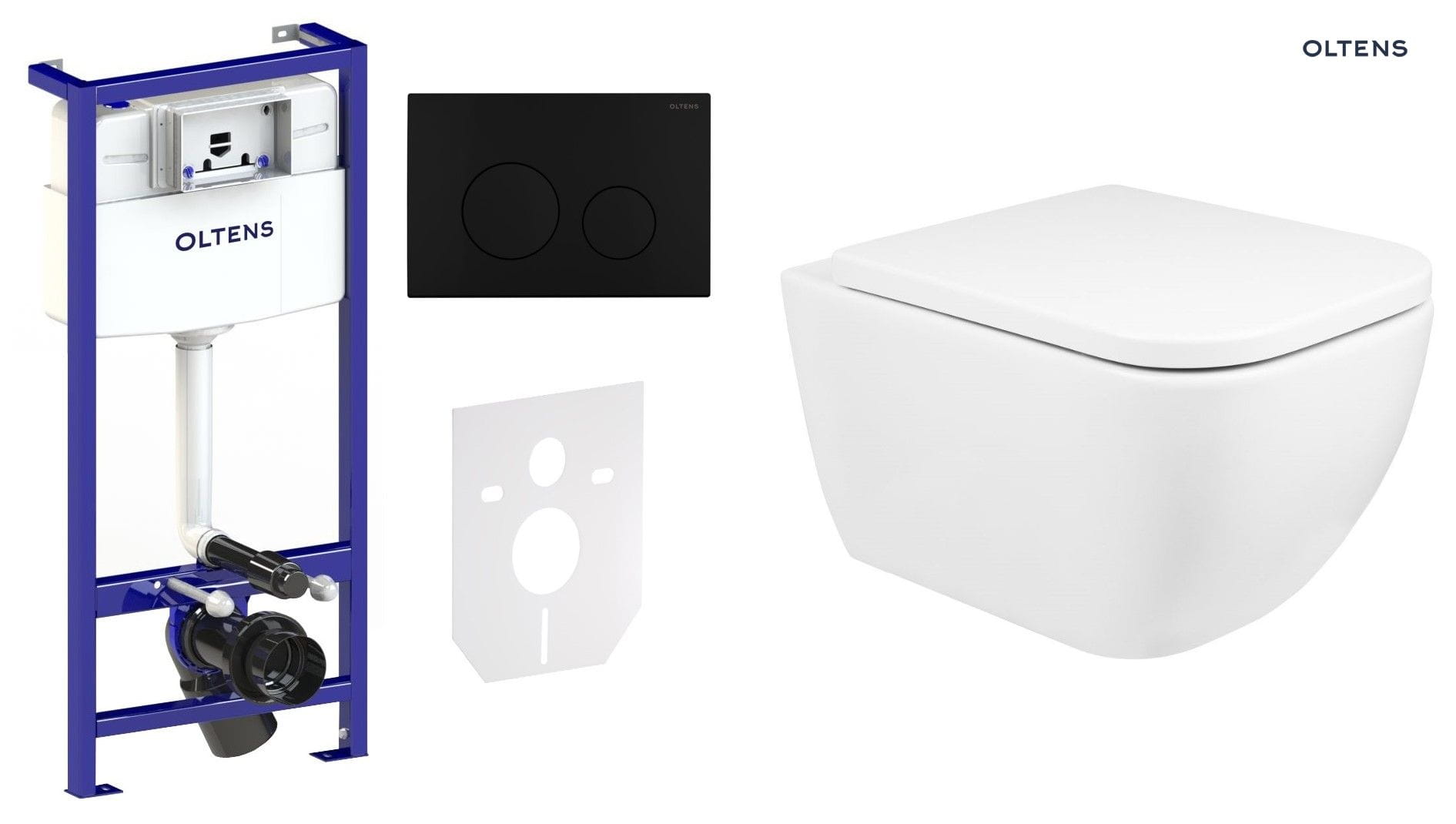 Zestaw ceramiki wiszącej Oltens Vernal z kompletnym stelażem podtynkowym 5w1 i przyciskiem spłukującym: